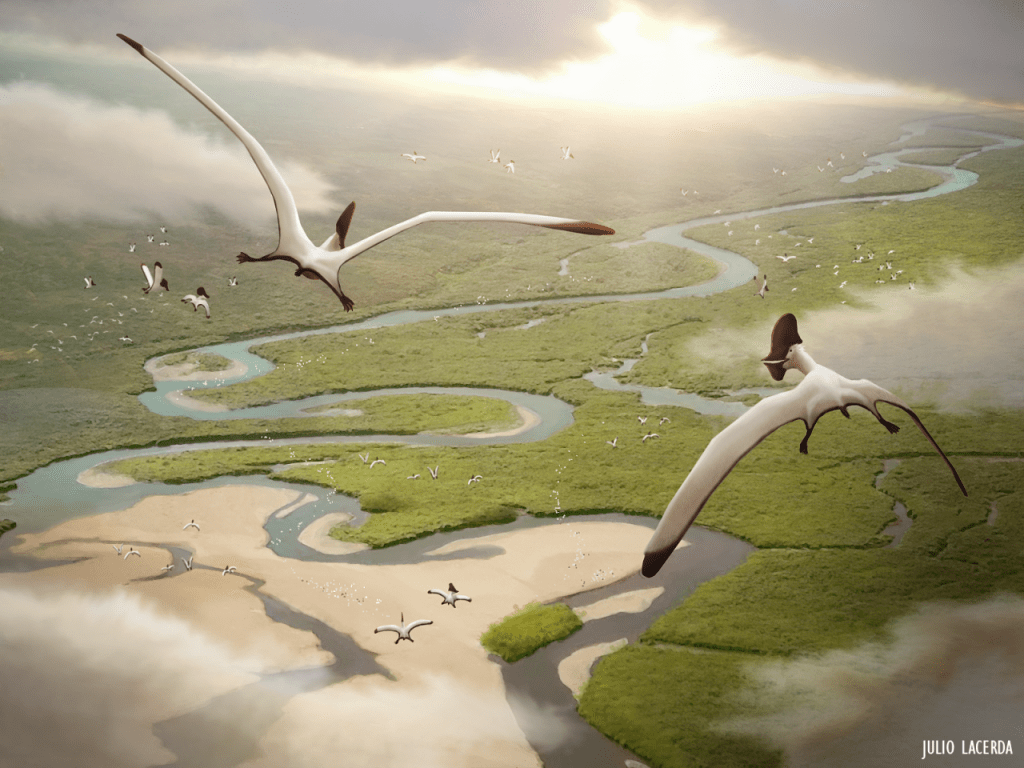 Pterosaurs in flight courtesy of Julio Lacerda, found here