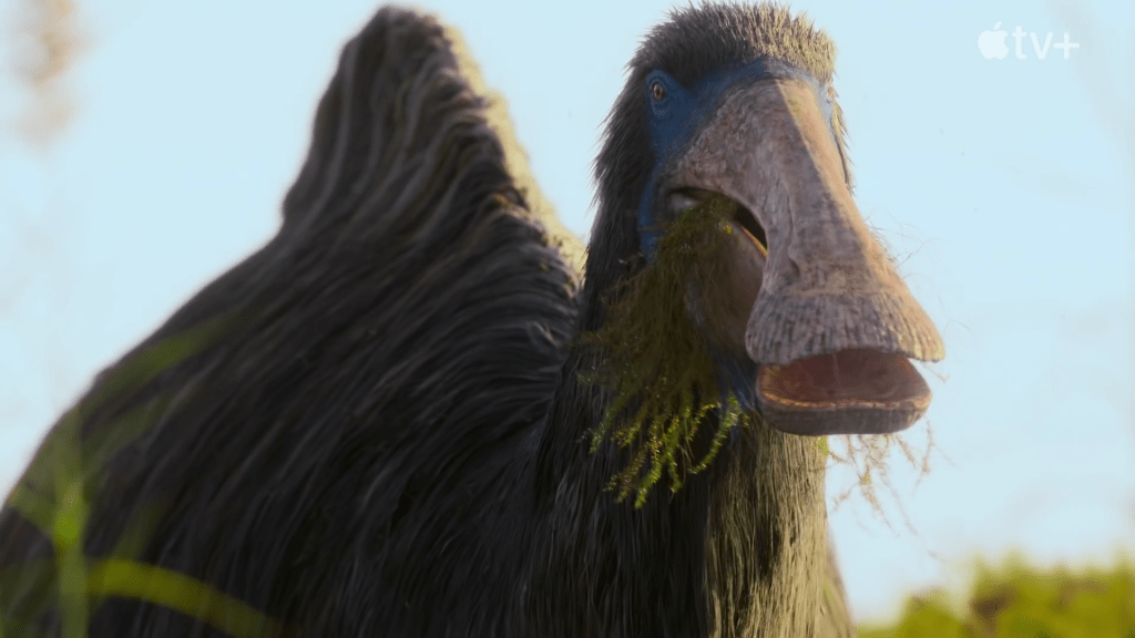 Of course, this realism can only be brought to life by beautiful animations. Fortunately, Prehistoric Planet’s visual appeal may be one of a kind. Vibrant colours and skin patterns make the dinosaurs pop out of the screen. Beautiful perspective shots allow for a sense of grandeur to develop. Speculative features, such as sauropod neck air sacs, make for intriguing glimpses into what life may have looked like in the time of the dinosaurs.