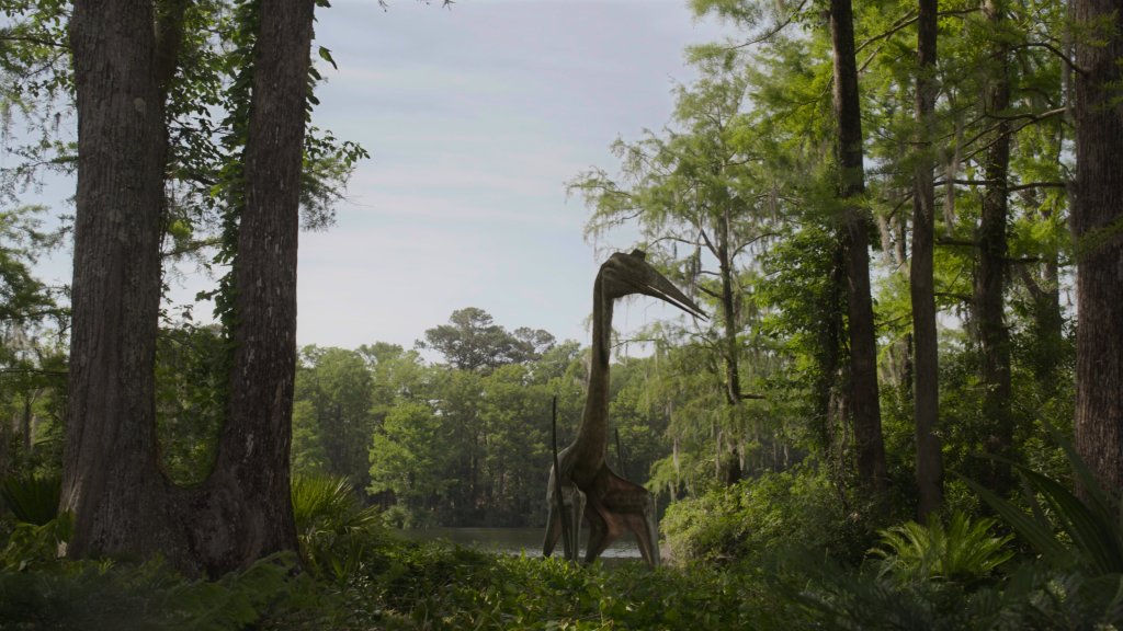 Episode three, entitled “Freshwater,” follows dinosaurs and pterosaurs living around the planet’s freshwater systems. For lovers of nature documentaries like Planet Earth, this episode leans more heavily into nature documentary tropes and trends, which works in its favour. Once again, prehistoric life pops out of the screen with brilliant designs and animations. Viewers are taken to southern North America, Central Asia, and Southern Africa to follow the dinosaurs, pterosaurs, and marine reptiles living in these environments.