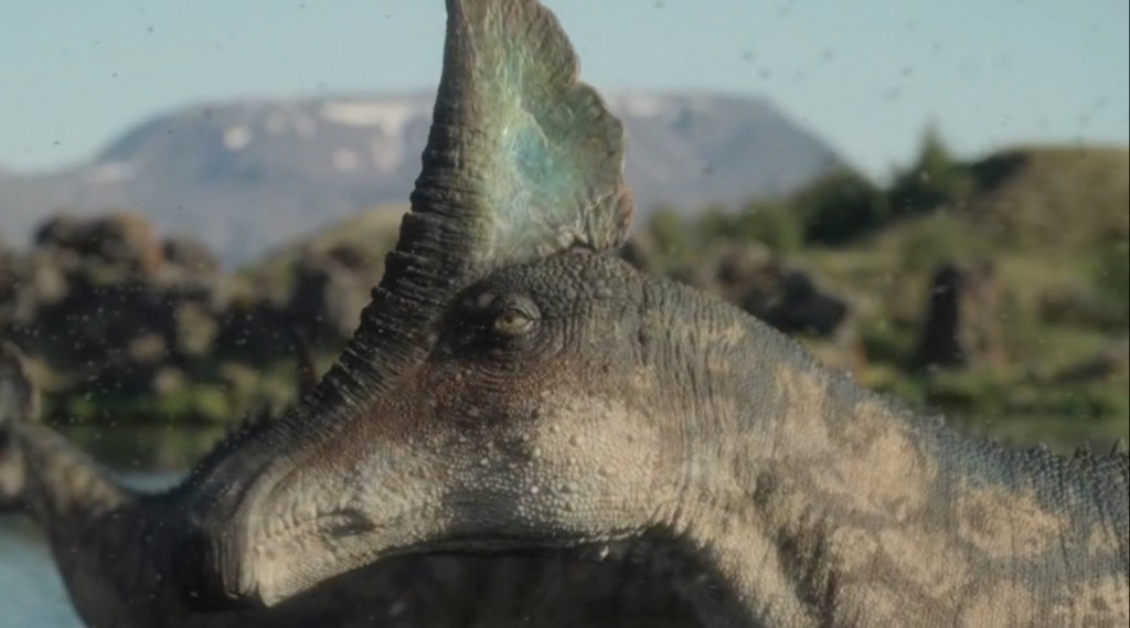 Prehistoric Planet’s next stop is the volcanic fields of Siberia, an area home to the hadrosaur Olorotitan. As David Attenborough explains, the nesting fields of Siberia are perfect for incubating dinosaur eggs. This reminded me of the classic BBC series Prehistoric Park, where titanosaur sauropods lay their eggs in the foothills of volcanoes in Cretaceous China for incubation. The young dinosaurs are adorable, and their lack of crests is a brilliant touch given that these structures developed over the course of the animal’s lifetime.