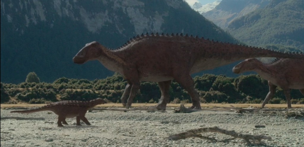 Ice Worlds opens with a pack of dromaeosaurids pursuing a herd of hadrosaurs in present-day Alaska. Watching a dromaeosaurid hunting an insect highlights the difficulties of living in these locations, with even a small meal engaging the raptor’s predatory instincts. While hadrosaurids were likely migratory creatures as depicted, the remains of infant hadrosaurs found in Alaska could point to year-round survival in polar regions. Nonetheless, it is possible these juveniles were like Wildebeest, capable of walking and accompanying their parents at early ages. Another piece of evidence that points towards migration is that the Arctic hadrosaurs shown are likely Edmontosaurus, a genus found throughout North America. Living in the poles year-round was a tough endeavour, and through migration, large dinosaurs like Edmontosaurus may have been able to make the most of their environment.