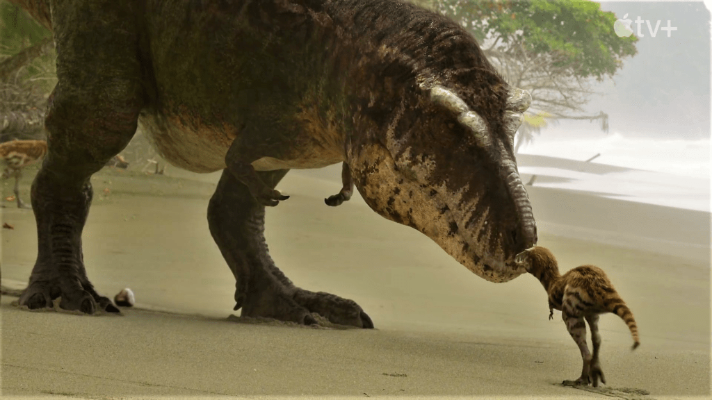 Tyrannosaurus rex: The first dinosaur to appear in Prehistoric Planet, Tyrannosaurus is presented as a doting father taking his children for a dangerous swim across the ocean. Though his extreme sense of smell led him to a delicious carcass, I am sure there were better options than bringing your kids through what has been labelled history’s deadliest sea….