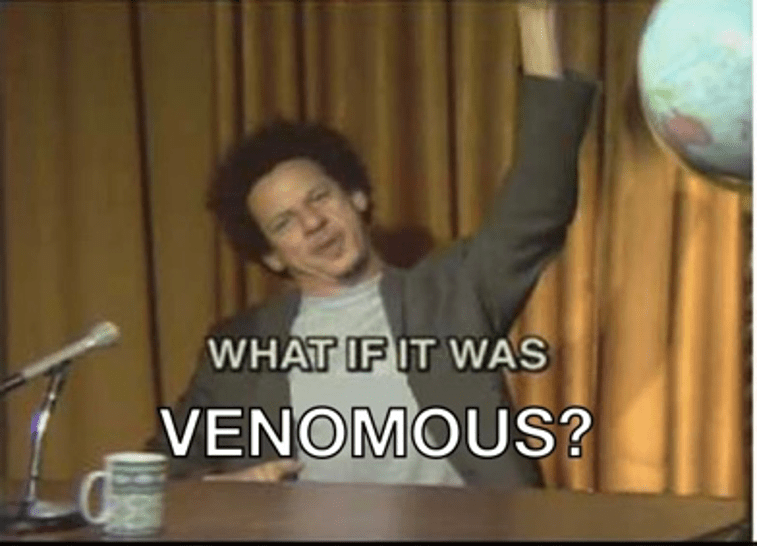 While debate exists as to whether mosasaurs are more closely related to snakes or monitor lizards, it’s clear that they fall within the Toxicofera clade[v]. The defining feature, or synapomorphy, of Toxicofera are several common venom proteins that assist in incapacitating prey[i]. These proteins were present in the common ancestor of the lineage and have become inherited by all extant members of Toxicofera, which means that we can assume mosasaurs likely would have possessed them too. However, Toxicofera is a controversial clade that some scientists dispute, and without any direct evidence of venom proteins in mosasaurs, we cannot prove this assumption.