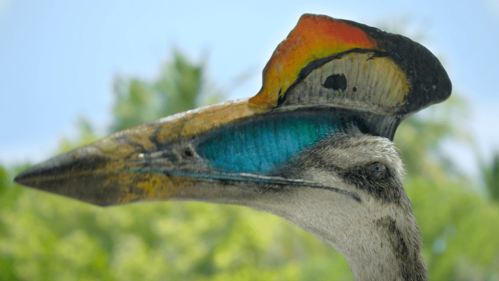 The final scene travels back to Europe to witness the mating ritual of Hatzegopteryx. Step one? Present your love interest with a dead baby hadrosaur you have carried kilometres out to sea (charming). Step two? Display your brightly coloured crest, whose colours have changed drastically since the non-breeding season. The crest of Hatzegopteryx exemplifies the series’ attention to detail, with fossil evidence and modern analogues coming together to bring prehistoric animals to life.