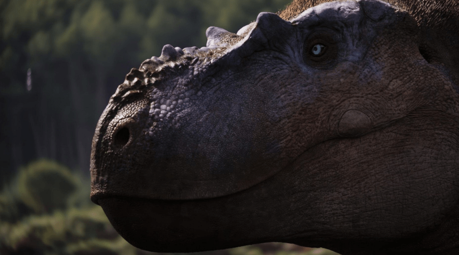 SPOILERS: I was particularly impressed with the appearances of the theropods featured in the series. The Albertosaurus and Carcharodontosaurus designs are standouts, for different reasons. The keratinous bumps and small protofeathers covering the top of the Albertosaurus’ face are incredible and represent a new take on the extent of theropod facial integument. The lips of the theropods are subtle and not overdone, thus remaining in-line with the most up-to-date research[i]. The shape of the Carcharodontosaurus skull, which often is based on its South America cousin Giganotosaurus, is markedly distinct. It may be a small detail, but it is one I wholeheartedly loved. Another detail I appreciated greatly was the dedication to depicting ontogenetic series within the dinosaurs presented, with juveniles and adults having distinct forms that highlight how dinosaurs changed as they grew up. SPOILERS END.